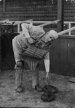 Owens, also known as 'Old Reliable', catching for the Minneapolis Millers, date unknown