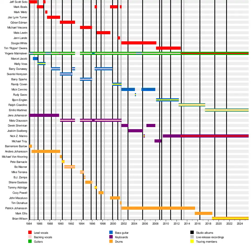| Rising Force (1984) | Yngwie Malmsteen | Jeff Scott Soto | Jens Johansson | Yngwie Malmsteen | Barriemore Barlow |