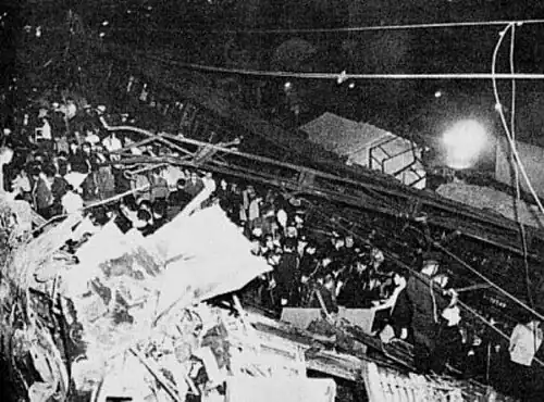 The Tsurumi rail accident (鶴見事故, Tsurumi jiko; or "Tsurumi accident") occurred on November 9, 1963, between Tsurumi and Shin-Koyasu stations on the Tōkaidō Main Line in Yokohama, Japan, about 30 kilometres (20 mi) south of Tokyo, when two passenger trains collided with a derailed freight train, killing 162 people.