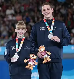 ![]() Noa Kazado Yakar and Yonatan Fridman during the 2018 Youth Olympic Games victory ceremony | ||||||||||||||||||||||||||||||||||||||||||
