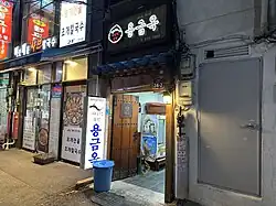 Yonggeumok (Korean: 용금옥; Hanja: 湧金屋; lit. house of flowing gold) is a historic Korean restaurant chain in Seoul, South Korea.[2] It is among the oldest active restaurants in South Korea and is the third oldest operating restaurant in Seoul, having first opened in 1932,[3] and specializes in the pond loach soup dish chueo-tang.[2] The restaurant has been operated by three generations of the same family since its founding. It has two branches: one in Da-dong, Jung District, and another in Tongin-dong. The Da-dong location is the older of the two. The restaurant has become a famous tourist attraction. It is listed on the Michelin Guide as a Bib Gourmand restaurant.[4] In 2013, it was made a Seoul Future Heritage.[5]