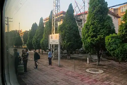 Yongji railway station (Chinese: 永济站) is a railway station in Yongji, Yuncheng, Shanxi, China.[1] It is an intermediate stop on the Datong–Puzhou railway. It handles passengers and freight. The station was originally called Zhaoyi (Chinese: 赵伊), its name was changed in 1957.[2]