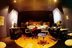 The studio had a vintage 1974 EMI Neve, one of only seven made.[3] The recording area was a 1,000 sq ft (93 m2) main room and mezzanine, with two adjoining isolation rooms and a third separate isolation booth. The main room was 20 ft (6.1 m) high and was New Zealand's only high-stud professional studio live room. It had virtually no permanent acoustic absorption, relying on room shape and deflective elements to achieve control of reverberation.