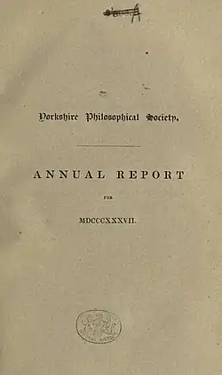 - ^ "Yorkshire Philosophical Society". Yorkshire Philosophical Society. 2007. Archived from the original on 28 September 2007. Retrieved 21 August 2007.