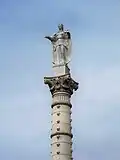 The Yorktown Victory Monument is a monument erected in Colonial National Historical Park in Yorktown, Virginia, commemorating the 1781 victory at Yorktown and the alliance with France that brought about the end of the American Revolution and the resulting peace with England after the American Revolutionary War. Designed by Richard Morris Hunt, the monument was installed in 1884. At the top stands a figure of Liberty sculpted by John Quincy Adams Ward. That element was destroyed by lightning in 1942. It was replaced in 1957 by a figure of Victory by Oskar J. W. Hansen.[1]
