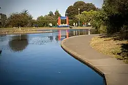 Many of the present-day playgrounds, golf course, and hiking trails were added between 1950 and 1980. A draft master plan was prepared in 1983, updated in 1988, and issued in 1996, following a 1987 bond passed by San Francisco voters to allocate $2.4 million for major park improvements.[13] The McLaren Park Vision Plan was approved by the Recreation and Parks Commission in 2017.[14] Improvements associated with the plan include building the Redwood Grove Playground, Jerry Garcia Amphitheater improvements, renovation of McLaren Park Community Gardens, and adding a restroom at the Group Picnic area.[14] The park is currently the second largest park in the city's Recreation and Park Department system,[15] after Golden Gate Park (the largest park within city limits, the Presidio, is part of the Golden Gate National Recreation Area).