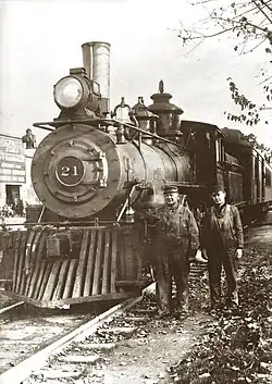 With a history spanning nearly 60 years of activity, Number 21 is one locomotive that deserves special attention. Originally used for 25 years on the Wabash Railroad, it was later sold to the Yosemite Valley Railroad in 1906. Engineer Charlie Grant, who had a special attachment to Number 21, accompanied the locomotive to its new home on the Yosemite Valley Railroad, where he worked for 20 years before retiring with honors in 1926.[38] Despite its age, Number 21 continued to operate until the 1930s before being put on standby service, making it one of the most enduring classic 4-4-0 locomotives in American railroading history.[3]: 107