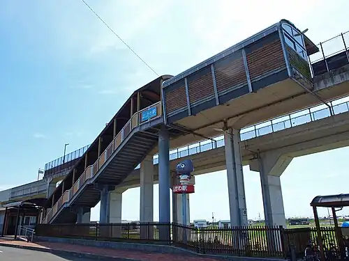 The station consists of a side platform serving a single elevated track. There is no station building, but an enclosed shelter is provided on the platform. Another waiting room has been set up under the elevated structure. Access to the platform is by a flight of steps. A bike shed is provided nearby.[2][5]