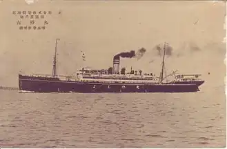 Yoshino Maru was built in 1907 as Kleist for the Norddeutscher Lloyd by the Schichau-Werke in Danzig, Germany. Laid up for the duration of WWI at Padang, Sumatra, Netherlands East Indies. In 1919, she was taken over by the United Kingdom, who transferred her as a war reparation in 1922 to the Japanese government, where she was renamed Yoshino Maru. In 1929, she was sold to Kinkai Yusen and used as an ocean liner. At the start of the Second Sino-Japanese War, she was chartered, later requisitioned, as a transport ship by the Imperial Japanese Navy. She began use as a hospital ship September 1942. On 26 January 1944 40 nm north of Rabaul, she was bombed and suffered a near-miss by an American patrol aircraft at 03-45S 151-42E. on 21 April 1944 Japan's Ministry of Foreign Affairs submitted a protest to the United States about the bombing of the hospital ship.