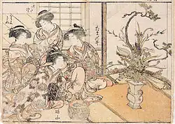 People involved in mizu shōbai (水商売, "the water trade")[8] would include hōkan (comedians), kabuki actors, dancers, dandies, rakes, tea-shop girls, Kanō (painters of the official school of painting), courtesans who resided in seirō (green houses) and geisha in their okiya.