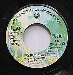 "You're the Love" is a 1978 song recorded by Seals and Crofts. The song reached number 18 on the U.S. Billboard Hot 100, and in Canada it spent two weeks at number eight. The song was the act's final Top 40 hit in both nations.
