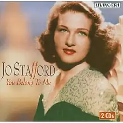 You Belong to Me is a 2004 compilation album of songs recorded by American singer Jo Stafford. It is one of many Stafford compilations to have been released in the early 2000s under the title You Belong to Me, the name derived from the song of the same name which became one of her best known hits during the 1950s. This album was released on June 29, 2004 and appears on the ASV and Living Era labels.[2]