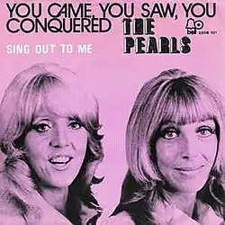 In 1972, "You Came, You Saw, You Conquered" was covered by the British female duo the Pearls, reaching the Top 40 in the UK.[3] Like the Ronettes' version, their record was also a non-album single. The song was, however, included on a 2005 compilation of the group's hits entitled, A String of Pearls.