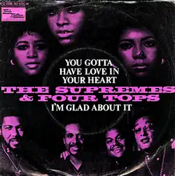 “You Gotta Have Love in Your Heart” is a duet single between Motown singing groups The Supremes and the Four Tops, released as a single from their The Return of the Magnificent 7 album in 1971. The single became a modest charter peaking at #55 on the U.S. Billboard Hot 100 chart and #41 on the U.S. Billboard R&B Singles Chart.[1] The single fared better in the UK, where it reached #25 in the official top 50 single chart. Lead vocals were by the groups' respective lead singers Jean Terrell and Levi Stubbs.