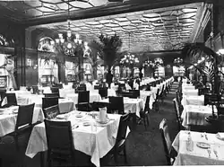 A travel guidebook described Young's in 1895: "The main entrance to this hotel is on Court Avenue, and the hotel extends to Court Square and Court Street. It is one of the largest and best of the hotels on the European plan. One of the features of this hotel is the ladies' dining-room, the entrance to which is on the Court Street side. This is a handsomely decorated room 100 feet long and 31 feet wide. It connects with other large dining-rooms, and a cafe for gentlemen on the ground floor. This hotel is a favorite place with New Yorkers. ... Recognized as among the best [hotel restaurants in the city] are those connected with Young's Hotel, the Parker House, and the Adams House. That of Young's Hotel is very extensive, occupying a large part of the ground floor of that establishment. It has dining-rooms for ladies and gentlemen, lunch rooms, and convenient lunch and oyster counters."[10]