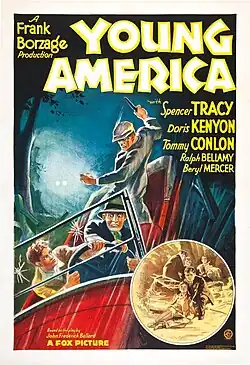 Young America is a 1932 American Pre-Code drama film about two juvenile delinquents, Arthur and Nutty, directed by Frank Borzage and starring Spencer Tracy and Doris Kenyon. It was first adapted for the screen by Maurine Watkins from the play by Fred Ballard. William M. Conselman rewrote the screenplay, and Maurine Watkins's name no longer appeared on the credits (per the American Film Institute catalog). Raymond Borzage plays Edward "Nutty" Beamish.[1]