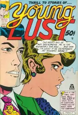 Young Lust is an underground comix anthology that was published sporadically from 1970 to 1993. The title, which parodied 1950s romance comics such as Young Love, was noted for its explicit depictions of sex. Unlike many other sex-fueled underground comix, Young Lust was generally not perceived as misogynistic.[1] Founding editors Bill Griffith and Jay Kinney gradually morphed the title into a satire of societal mores.[2] According to Kinney, Young Lust "became one of the top three best-selling underground comix, along with Zap Comix and The Fabulous Furry Freak Brothers".[3]