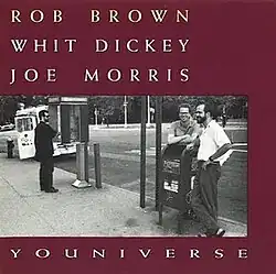Youniverse is an album by American jazz saxophonist Rob Brown recorded in 1992 and released on the Riti label, operated by free jazz musician and composer Joe Morris. It features a trio with Morris on guitar and Whit Dickey on drums playing six Brown compositions and two collective improvisations.[1] The same lineup would be named Trio Ahxoloxha when they released the album Prophet Moon a decade later under the leadership of Dickey.[2]