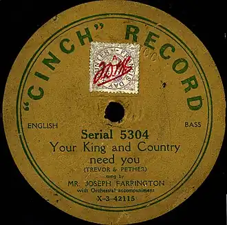 1. ^ a b The AHRC Research Centre for the History and Analysis of Recorded Music Search for "Your King and Country Need You"
