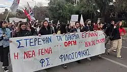 Students in a demonstration for the Tempi rail crash in Greece, 2023