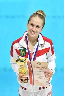 Yulia Vladimirovna Timoshinina (Russian: Юлия Владимировна Тимошинина, born 23 January 1998) is a Russian diver.