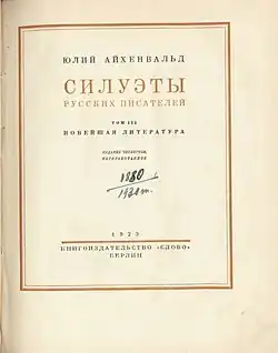 - In his best-known book Silhouettes of Russian Writers (1909) Aykhenvald offers a series of memorable impressionistic sketches of major Russian authors and their works. His argument that Ivan Turgenev was a second-rate writer caused an outcry in the conservative literary circles.