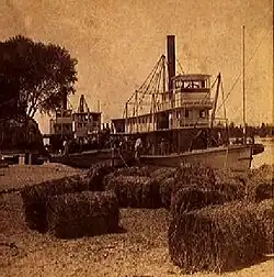 Following the United States establishing Fort Yuma, two towns developed one mile downriver. The one on the California side was called Jaeger City, named after the owner of Jaeger's Ferry, which crossed the river there. It was for a time the larger of the two, with the Butterfield Overland Mail office and station, two blacksmiths, a hotel, two stores, and other dwellings.[11]