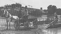After the Mexican Cession, American settlers headed west over the Colorado River to take part in the California gold rush, many of whom crossed over Quechan lands. Seeing the opportunity, the Quechans established a ferry business near the junction of the Gila and the Colorado Rivers to transport American settlers on their way to California, drawing ire from white American ferry businesses operating on the Colorado River.[1]