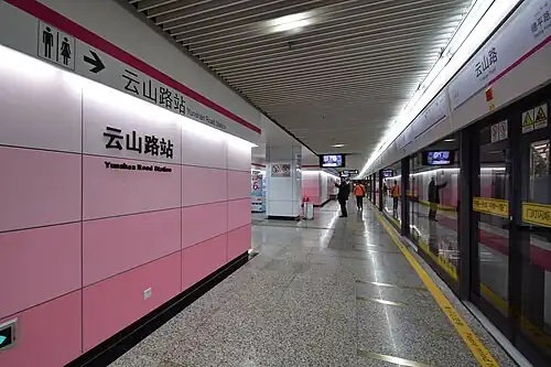 Yunshan Road (simplified Chinese: 云山路; traditional Chinese: 雲山路; pinyin: Yúnshān Lù) is a station on Shanghai Metro Line 6 and Line 14.[1] It began operation on 29 December 2007. It later became an interchange station on 30 December 2021 when Line 14 opened.[2] It is located at the junction of Yunshan Road and Zhangyang Road. Like all other stations on Line 6, it is located in Shanghai's Pudong New Area.