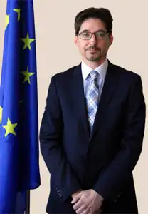 Ambassador Yuri Sterk, a career diplomat from the Ministry of Foreign Affairs of Bulgaria, has graduated the Plovdiv Language School and has a degree with Honours in Public International Law from the Moscow Institute of International Relations; he has been a trainee in the Diplomat Training Program at Stanford University, California; he also has a DEA in Political Science, profile "Construction européenne" from the Institute of Political Science, Robert Schuman University, Strasbourg, France.[2]