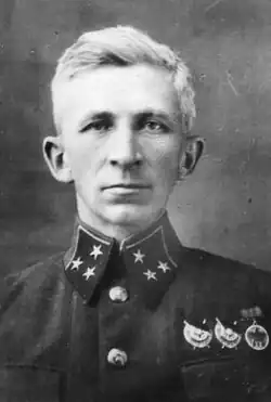 From May 1931, he served as chief of staff of the 50th Rifle Division at Solnechnogorsk. Novoselsky rose to assistant commander of the 14th Rifle Division at Vladimir in April 1932, and in February 1934 transferred to hold the same position with the 29th Rifle Division at Vyazma. When the Red Army introduced personal military ranks, he received the rank of kombrig on 26 November 1935.[3] In July 1937 he rose to command the 50th Rifle Division while serving as chief of the Polotsk Fortified Region, and from July 1938 temporarily commanded the 4th Rifle Corps of the Belorussian Special Military District at Vitebsk. For successes in combat training, he was awarded the Order of the Red Banner on 22 February 1938. In August Novoselsky was transferred to command the 86th Rifle Division of the Volga Military District at Kazan. The division was reorganized into a motor rifle division and sent to the Northwestern Front.[1][2]