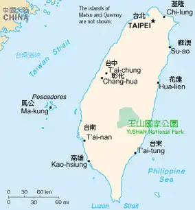 - ^ Taiwan's National Park Website. Archived May 12, 2007, at the Wayback Machine