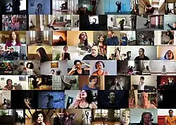 HUMAN SIGNS, is a Global participatory online dance and voice artwork, conceived in time of COVID-19, with the participation of over 218 artists from over 50 countries presented digitally in MANIFESTA 13 Marseille as a part of Real Utopias exhibition and as a physical exhibition on the occasion of LOOP Festival in Barcelona.