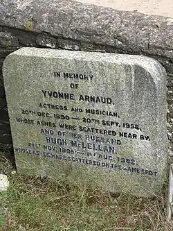 For many years she lived in Guildford, Surrey, where she died. Her ashes were scattered in St. Martha's churchyard on St. Martha's Hill just south-east of Guildford, and there is a memorial to her on the church grounds. In 1965 the Yvonne Arnaud Theatre was opened in the town.
