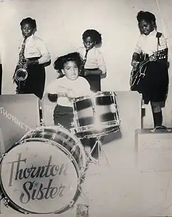 Prior to becoming a physician, at age 7, Thornton began playing alto saxophone and at age 9, she and her sisters formed a family jazz band called "The Thornettes". As they grew older, the jazz combo developed into an all-girl Rhythm-and-Blues (R&B) family band known as "The Thornton Sisters". Their mother (Itasker) was the wardrobe mistress, and also played upright and then electric bass. Her older sister, Donna, played tenor saxophone; Jeanette played electric guitar; Linda played drums[8] and was lead vocalist while her youngest sister, Rita, played piano and keyboards. Their father, Donald, was the road manager.[9]