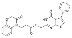 ZINC17988990 is a drug which acts as a potent and selective inhibitor for the TRPV5 calcium channel, with an IC50 of 177 nM and high selectivity for TRPV5 over TRPV6 and the other subtypes of TRPV. It is the first selective inhibitor to be developed for TRPV5, and may be useful for modulating calcium reabsorption in the kidneys.[1]