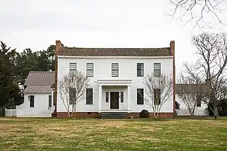 It is a two-story wood frame Plantation plain-style house with Federal detailing. It was restored in 1985.[2]