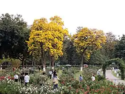 Zakir Husain Rose Garden, is a botanical garden located in Chandigarh, India and spread over 30 acres (120,000 m2) of land,[1] with 50,000 rose-bushes of 1600 different species.[2] Some important Rose species in this Garden are the Royal William Rose, Europa-Rosarium, Rosa Gallica, Beach Rose, Rosa chinensis, Centifolia roses, Rosa glauca. Named after India's former president, Zakir Husain and created in 1967 under the guidance of Mohinder Singh Randhawa, Chandigarh's first chief commissioner, the garden has the distinction of being Asia's largest.[2] The garden has not only roses but also trees of medicinal value. Some of the medicinal plants that can be spotted here are bel, bahera, harar, camphor and yellow gulmohar. The rose plants have been planted in carved-out lawns and flower beds. The garden is open year-round, with peak bloom occurring from December to February, attracting thousands of visitors during the annual Rose Festival.