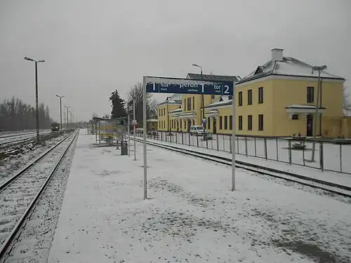Zamość railway station (Polish for Stacja Zamość) is located in Zamość, Poland on Szczebrzeska Street, near the zoological garden. The station was opened in 1916. Demolished during the World War II, its building was twice rebuilt in 1944 and 1963. Since 2015 the building is owned by City of Zamość.