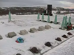 From 1941 to 1944, the Litsa River formed the Arctic frontline between German and Finnish troops west of the river – trying to capture Murmansk – and Soviet troops on the east, defending the city. This frontier was of vital importance for both sides, as Murmansk was the only Soviet harbour left in Europe and the northern route to Murmansk and Arkhangelsk supplied the Soviet Union with approximately 25% of all lend-lease aid.[2] During the stalemate that lasted four years, thousands perished in the tundras on both sides of the river. At the time the Litsa valley was called Death Valley (Долина смерти, Dolina smerti) by the Soviets; though later the expression Valley of Honor (Долина славы, Dolina slavy) became fashionable. The defense of Murmansk succeeded; the Germans never reached the city and the supply lines were not seriously interrupted, although the Germans bombed Murmansk to rubble from occupied Norway. See also: Operation Silver Fox and Operation Platinum Fox. The remains of the WWII fighting (trenches, pillboxes, defense pits etc.) can be visited with some specialised travel agencies.[3][4]