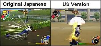• Certain story mode levels have been given different objectives. Near the end of the United States version, the player is usually given different objectives besides fighting, such as knocking out the opponent's spell book, trying to survive until the time runs out, etc. In the Japanese version, the player is to just fight them instead.