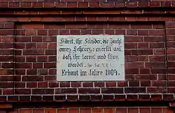 In 1907, a red-brick bell tower was erected beside the school. On 14 July 1907, a bell, cast in 1807 by the Heinrich August Weinhold bell foundry in Dresden and donated by Weiland, was consecrated. After Weiland's death, a memorial stone was erected near the railway crossing on Landesstraße 593, which remains today.[5]