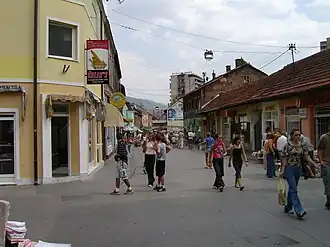 On 19 April 1993, during the Croat–Bosniak War, sixteen civilians were killed and fifty injured when a HVO howitzer-fired grenade hit the central bazaar of Zenica.[27] The grenade was shot from the village of Putićevo [15 km (9.3 mi)].[28] During this period, Zenica was isolated from the rest of the world for a year and a half. The city suffered significant losses from sniper fire, arson, hunger, and a lack of electricity.[29]