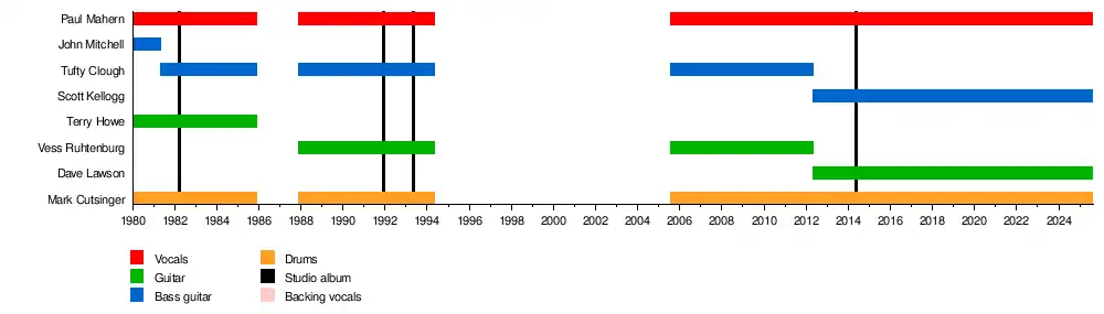 | Past members | John Mitchell – bass David "Tufty" Clough – bass Terry "Hollywood" Howe (deceased) – guitar Vess Ruhtenberg – guitar |