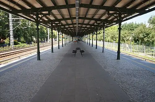 To better serve the place, the platform was relocated 200 meters north to the northern side of the forest road. The new station, which opened on November 1, 1897, was named Zeuthen.[3]