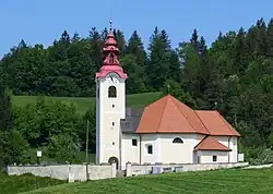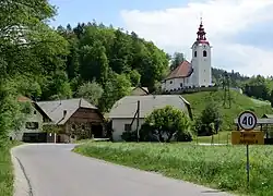 The local church, built on a small hill southwest of the settlement core, is dedicated to Saint Anne and belongs to the Parish of Šmartno. It is a Baroque church built in the third quarter of the 18th century.[4]
