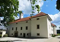 Tuštanj Castle (German: Tuffstein) is a castle in the settlement. It stands on a hill southwest of Moravče and southeast of the road to Vrhpolje. It was built in 1490, and the restyled as a Renaissance mansion between 1667 and 1671. It has an arcaded courtyard, a door casing with a heraldic plaque, and vintage furnishings. There is a chapel next to the castle dating from 1704 with Baroque paintings. The castle park preserves a pond and a large plane tree.[5]