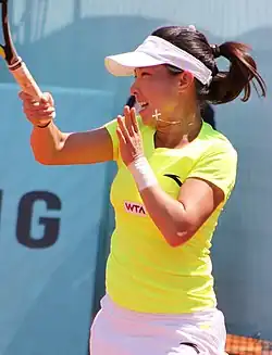 ^ Zheng alongside Yan Zi was scheduled to play in the second round after first round bye. However, the pair withdraw nearly before match due to Zheng's left ankle injury.