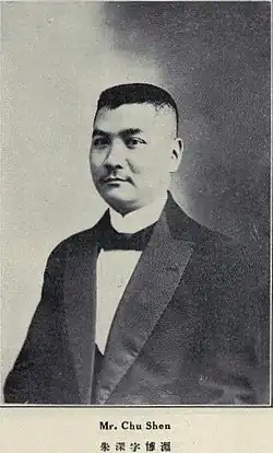 Zhu Shen (Chinese: 朱深; pinyin: Zhū Shēn; Wade–Giles: Chu Shen; 1879[1] – July 2, 1943) was a politician and public prosecutor in the Republic of China. He was an important politician during the Provisional Government of the Republic of China and the Wang Jingwei regime. His courtesy name was Boyuan (博淵). He was born in Yongqing, Zhili (Hebei).