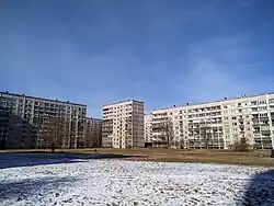 Ziepniekkalns is a neighborhood in Riga, Latvia. It is located in the Pārdaugava district of Riga close to the city's southern border. Ziepniekkalns is the newest out of all Riga's neighborhoods.[1] It was developed in the late 1980s and early 1990s and primarily consists of Soviet-era 10-story apartment buildings. However, many older buildings constructed in the early 1960s still exist in Ziepniekkalns. There is a stark contrast between the older 3-story buildings and the newer 10-story ones. In the mid-1990s, the Route19 trolleybus line was extended to the heart of Ziepniekkalns, with its final stop now at the Mego supermarket. The trolleybus route 4 runs through the city center to Jugla.[2]